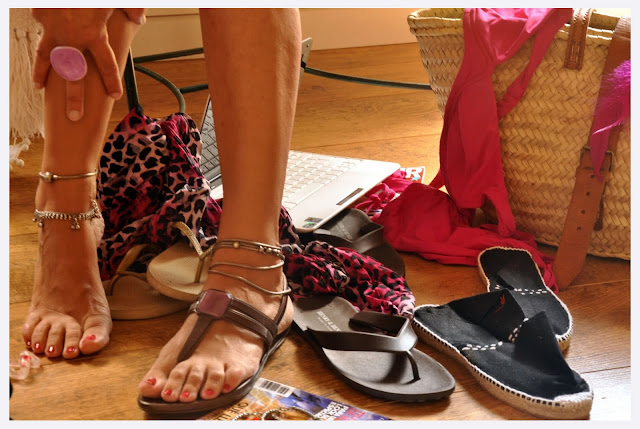 Es difícil, muy difícil empezar la maleta y aquí estoy.... he decidido que lo primero que voy a elegir son las chancletas, y ya llevo media hora... también me puedo llevar las "espardenyas" (las tengo en un montón de colores) y vuelven a estar muy de moda,